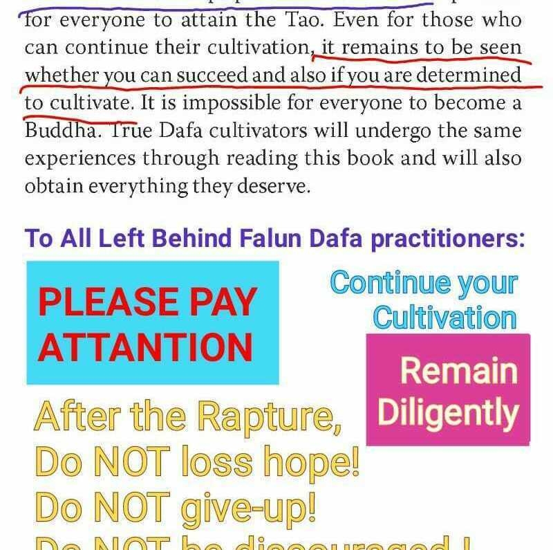 Before the manifesting of Falun Dafa in 1992, Master Li wanted to have 200 million practitioners as the 1st generation. However, the kingdom of darkness did not agree with it. They only wanted to give 80 million in the 1st generation. After the negotiation between God Almighty and the rulers in kingdom of darkness, Master Li can have 100 million practitioners within the 1st generation, which means there were 100 million people had been excluded out. Many of them are the Elected Saints, who are Christians also within the Body of Christ.