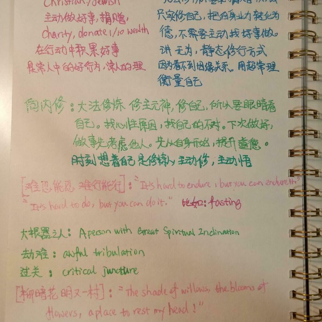 Nov 1st 2017 : 学法,抄书,总结,向内找, 悟法理。字写的不好看,千万不要跟我学。