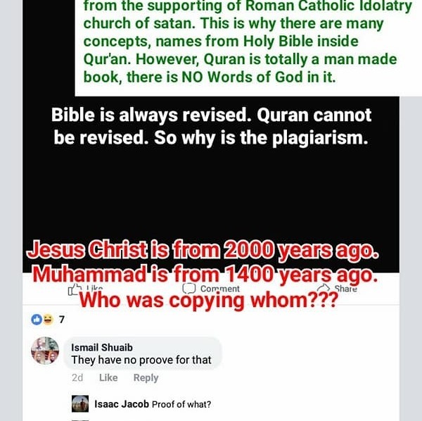 Mar 2nd 2018 : Muslims saying jesus Christ let Muhammad come to Christians. Why Jesus Christ send an enemy on earth to deny himself as MESSIAH????