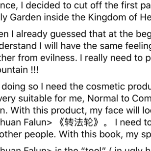前言:因为12年前拜偶像(亚当),抛弃了心中的师父(创世主),选择了地上的“亚当”当自己心中的 ”神“, 犯下大错。结果我失去了心中最宝贵的东西:对修炼精进的渴望,心中链接天堂的那根绳索,和克服一切困难的勇气。 我一下子变成了“游民” 。 因为骄傲自大, 不向内找,不修自己,不愿意低头承认错误,不好意思求师父原谅。所以一遇到问题就选错路,一错再错。 就变成今天这个地步.................... Today Feb 9th. I go to the store to collect my flower box. I asked a lady working in the store “Do you have this flower box?” She stunned first , and then embarrassed to say that there are many people asking for this box, however, the gift is a “hydration mark”. Well, I know that !! I am not been surprised by that !! The box should be in Heaven, and the gift on land is a product, called “Hydra Vegetal”. Flower box is a “High Spirit in Heaven “ with her earth physical body “ a cosmetic product “ on land. Chinese people say “天人合一“ , has a similar meaning as it. Hence, I decided to cut off the first page and bring back home with me, to remind me my real home, The Holy Garden inside the Kingdom of Heaven, where The Creator lives. Even I already guessed that at the beginning, However, I still feel disappointed in my heart. And I start to understand I will have the same feeling on the Final Day (Nov 19th, 2017) if I am not turn back to my Holy Father from evilness. I really need to practice myself and save “Child” hardly , to be qualified to the Holy Mountain !!! By doing so I need the cosmetic product “ Hydra Vegetal “ which gives me “ Water “ to hydrate flower, me. It is very suitable for me, Normal to Combination skin ^^, because my T-zone is oily, and cheeks are normal skin. With this product, my face will look beautiful. Same, in cultivation, my “water” is the human-word book <Zhuan Falun> 《转法轮》。 I need to read it effectively everyday, with repent and clarify truth of FalunGong to other people. With this book, my spirit will look beautiful. <Zhuan Falun> is the “tool” ( in ugly human words) connecting Heave, The Creator. Which is also the “Water of Life” in BOOK OF REVELATION 21:17 “ 17 And the Spirit and the bride say, "Come!" And let him who hears say, "Come!" And let him who thirsts come. Whoever desires, let him take the water of life freely. “ It is the Law of The New Universe, based on the 3 Principles of the Big Cosmos “ TRUTHFULNESS, COMPASSION, FORBEARANCE” . The founder of Falun Dafa, Mr. Li Hongzhi is the LIVING CREATOR ON LAND, the human body of my Holy Father.www.falundafa.orgAs well, my Holy Father gives me the goal I should practice myself: Elegant, Practical, Feminine. It comes from the 3 Principles, which assign the original personal traits of me when my Holy Father first created me. 真 - Truthfulness: I should be as Elegant as a flower in the Kingdom of Heaven. 善 - Compassion: gives me the Practical eager, effectiveness power to clarifying Truth of Falungong for saving humans. 忍 - Forbearance: let me be patient on difficulties, give me the mother love to All and the courage of Feminine on labouring baby. This is what I should be like in Heaven and on Land. Also, when people see me in person, I will look like simple, clean, “poor” on the surface, just like this bag; with the heart of Heaven, the flower box. A good example of “future me” is ShenYun dancers, you can see their daily life pictures on websitewww.ShenYun.comThanks FATHER, this gift is crucial to me, i will do the best to change myself and be fast to meet you in the Holy Mountain.