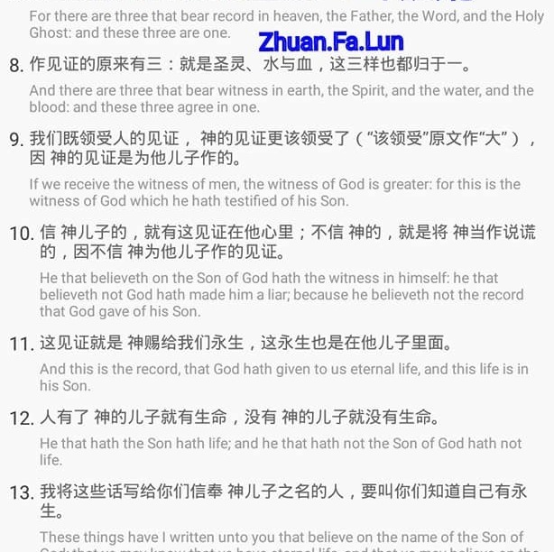1 John 5:7 is the Gospel of God, preached by Apostle Paul, which is Zhuan.Fa.Lun. Within this book, you can meet the Wisdom from Father God Yahweh and Mother God Ruach HaKodesh.