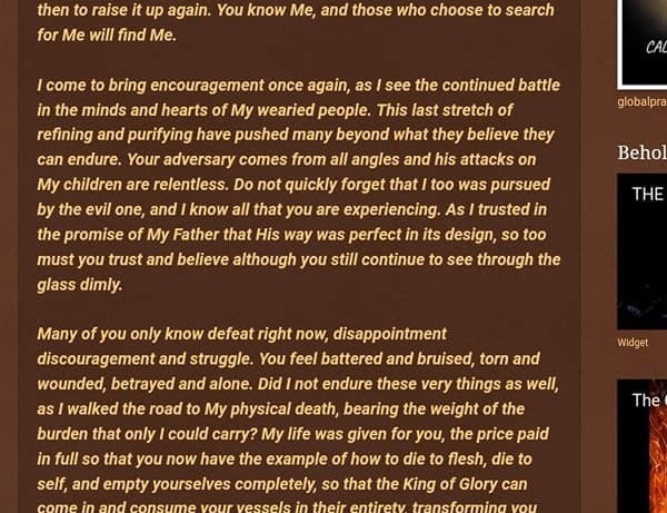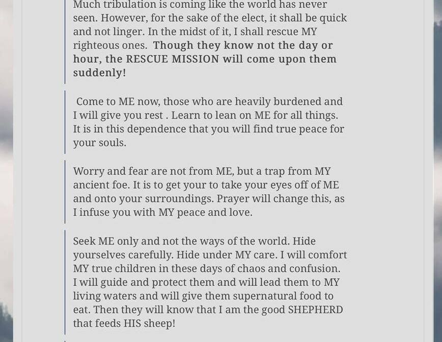 | https://jesus-comes.com/index.php/2020/12/03/dies-ist-keine-entruckungs-ubung-this-is-not-a-rapture-drill/ | https://www.heartdwellers.org/home-.html | https://www.hiskingdomprophecy.com | http://trumpetcallofgodonline.com/index.php5?title=Main_Page | https://www.youtube.com/channel/UCK0H2-YRNEVIMHtElZfKYwA |