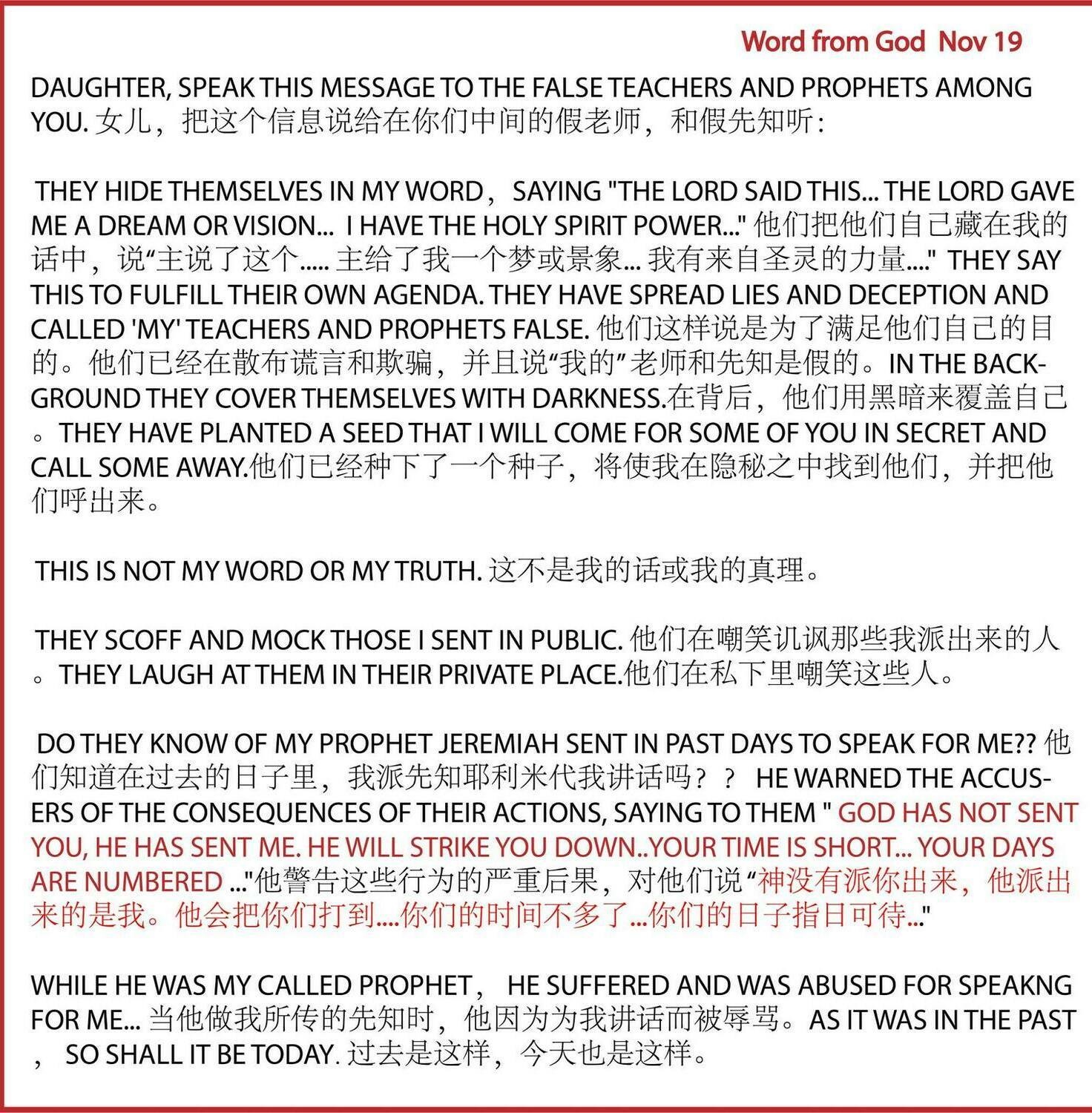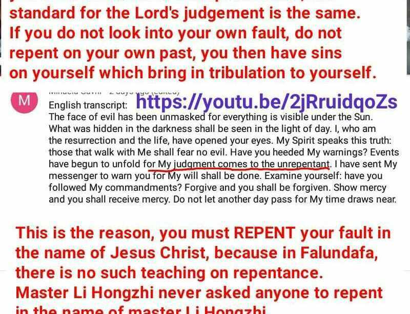 After the Rapture, Master Li Hongzhi will be released out from all bondages. He can then speak clearly on what happened on me from the very beginning till now.