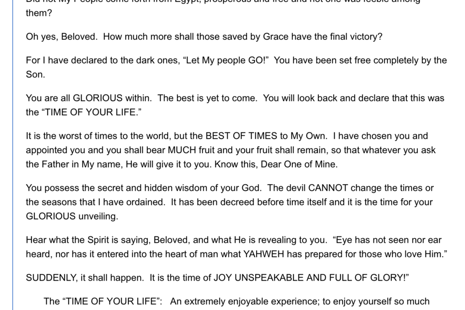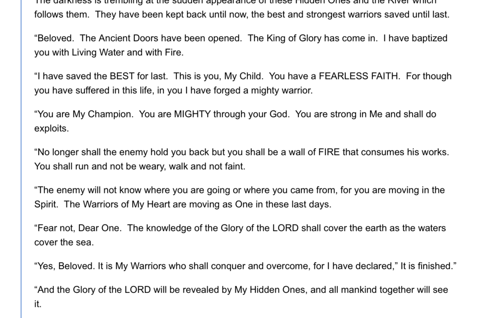 | http://drpatricia.com | https://latterrain333.wixsite.com/lifeline/blog/ | NA | NA | https://www.hiskingdomprophecy.com/mobile-friendly-list-of-authors/ |