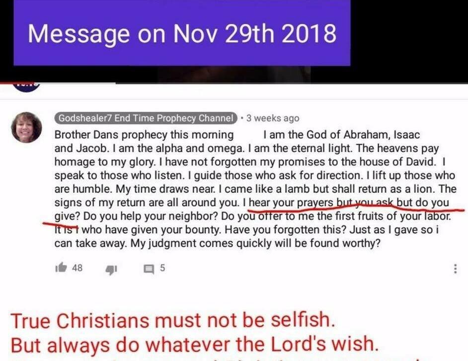 There are many Christians have the gift to receive message from Lord Jesus Christ, Holy Spirit or Father God.