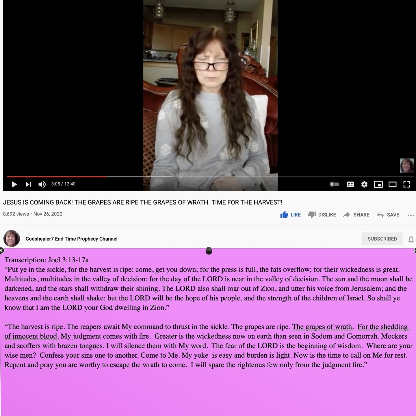 Message from Nov 26th 2020 JESUS IS COMING BACK! THE GRAPES ARE RIPE THE GRAPES OF WRATH. TIME FOR THE HARVEST!