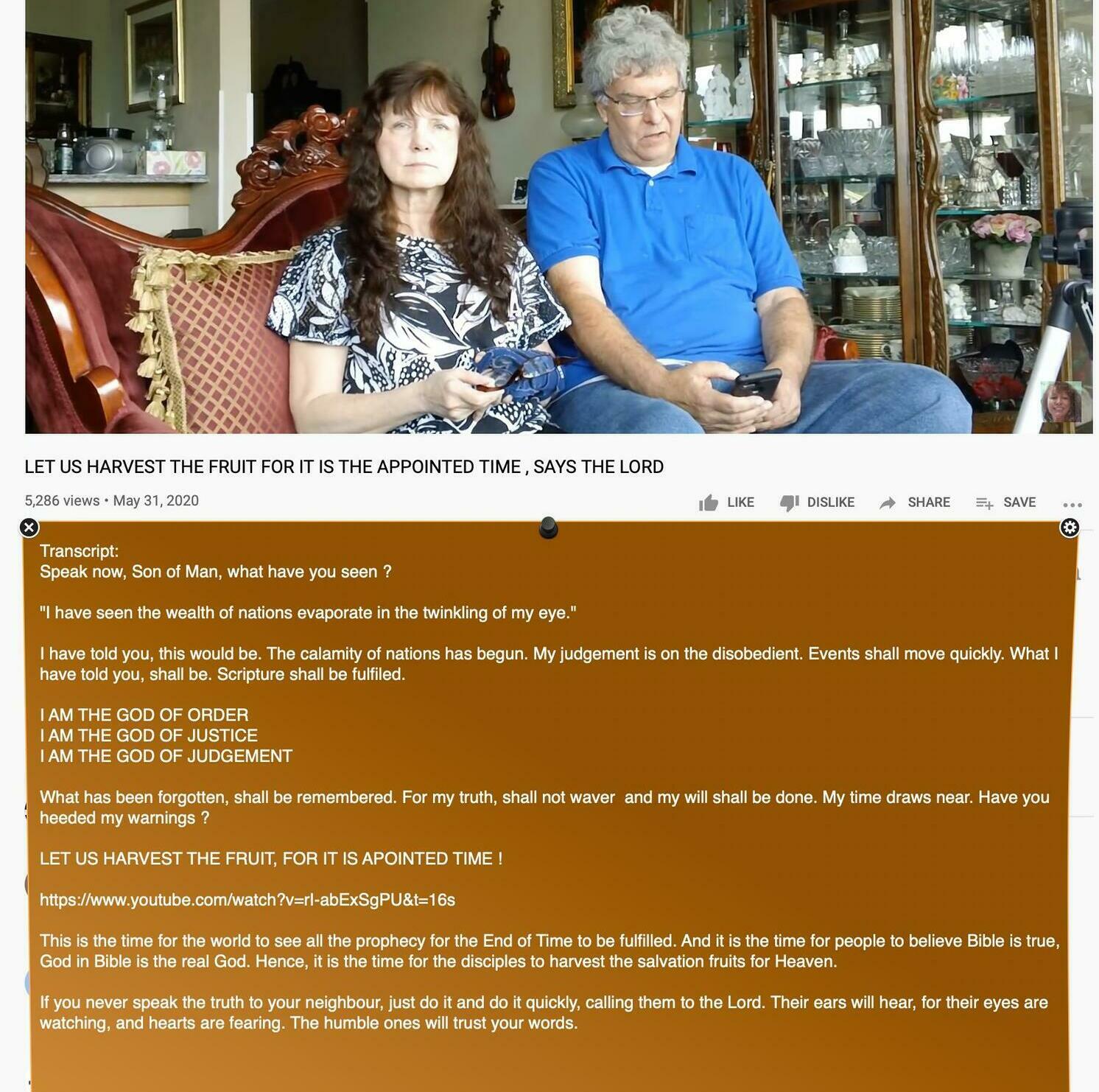 Part 2 : “The harvest is ripe. The reapers await My command to thrust in the sickle. The grapes are ripe. The grapes of wrath. For the shedding of innocent blood. My judgment comes with fire. Greater is the wickedness now on earth than seen in Sodom and Gomorrah. Mockers and scoffers with brazen tongues. I will silence them with My word. The fear of the LORD is the beginning of wisdom. Where are your wise men? Confess your sins one to another. Come to Me. My yoke is easy and burden is light. Now is the time to call on Me for rest. Repent and pray you are worthy to escape the wrath to come. I will spare the righteous few only from the judgment fire.”