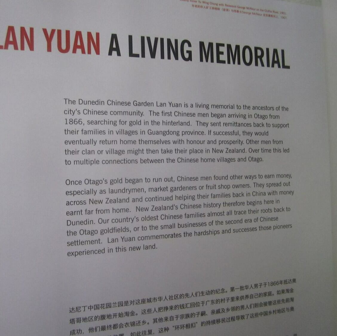 - Lan Yuan , the Chinese Garden in Dunedin. It is not big, but very beautiful. Dunedin Chinese garden. Memorial for early Chinese gold seekers