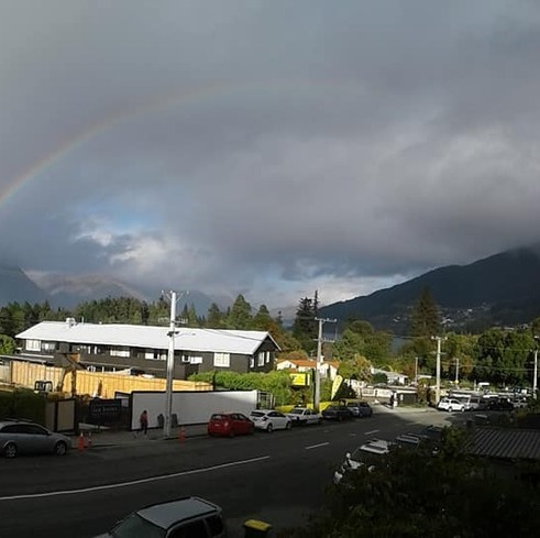 This morning, right now, April 12th at 9 am, I am watching this big rainbow in front of my window, which is on top of lake wakatipu in Queenstown.https://www.facebook.com/1845462256/videos/a.10210987430922147/10211055104733950