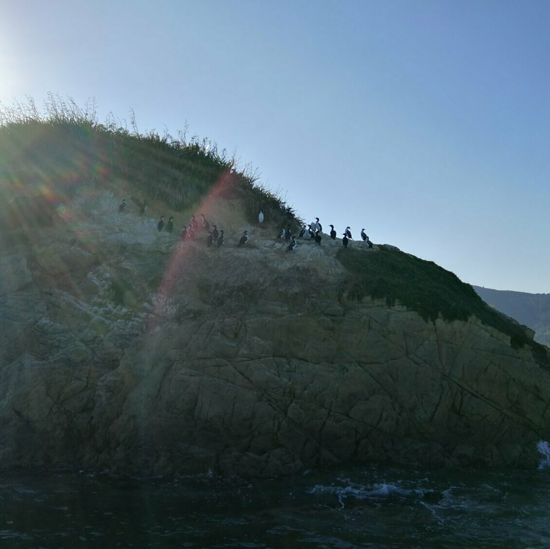 After seeing these orcas, we saw a large group on a rock. They are even more precious than orcas. They are New Zealand King Shags. They have pink feet and that is very few to see.