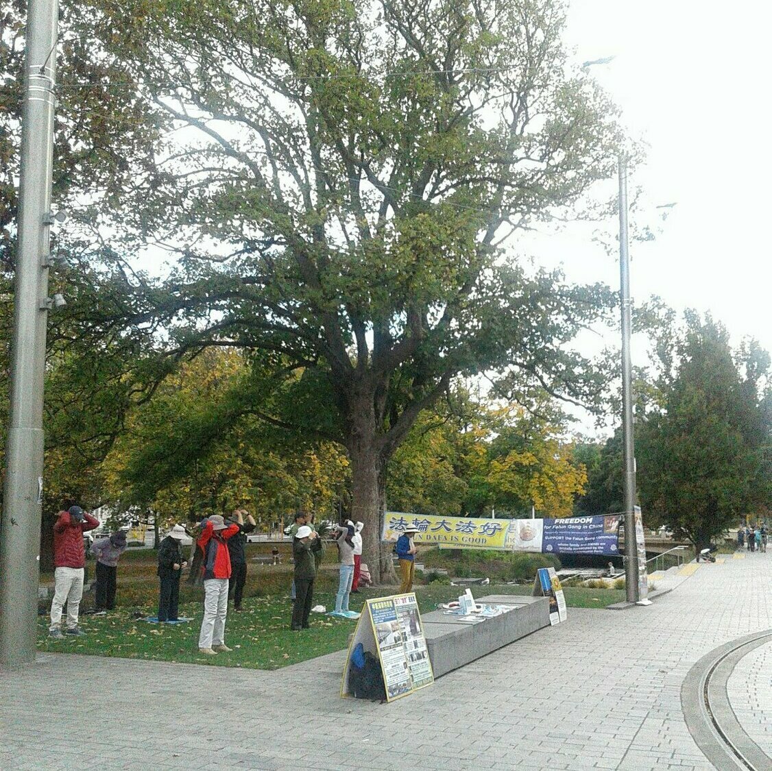 I took this photo in christchurch. They have public exercise on every Saturday, from 10-12 . You are welcomed to join.The place is close to the Bridge of Rememberance.